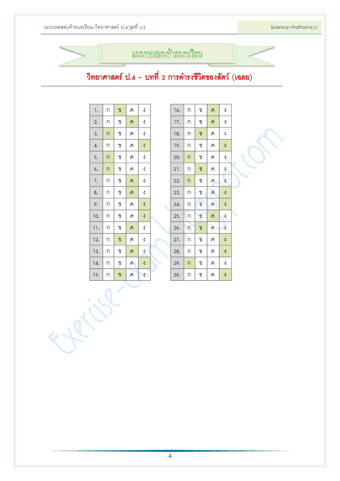 - ข้อสอบ วิทยาศาสตร์ ป.4