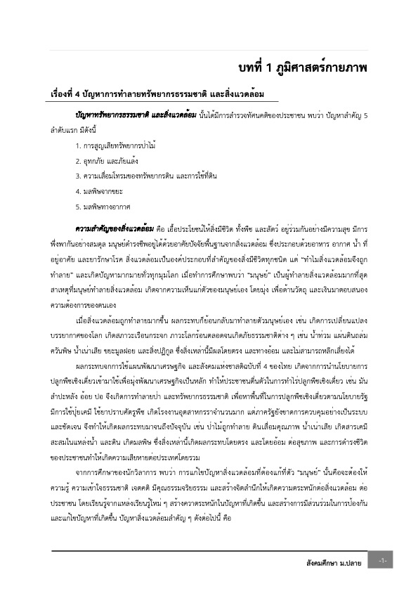 สรุปเนื้อหา - สังคมศึกษา ม. ปลาย บทที่ 1 ภูมิศาสตร์กายภาพ - เรื่องที่ 4 ปัญหาการทำลายทรัพยากรธรรมชาติ และสิ่งแวดล้อม
